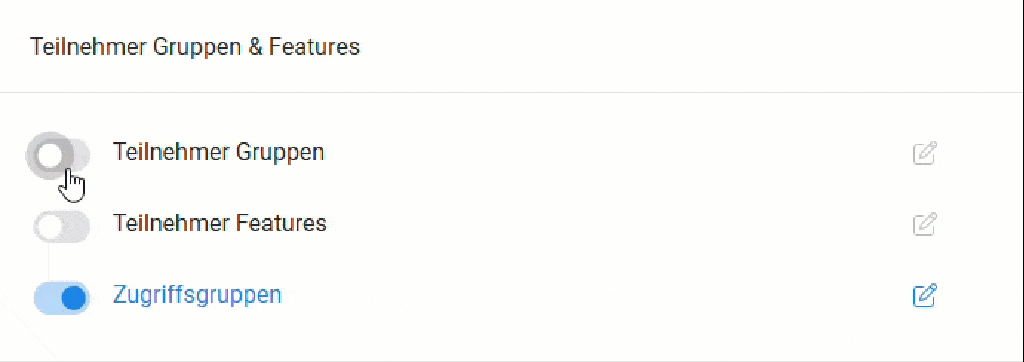 - Scrollen Sie zum Abschnitt „Teilnehmer Gruppen & Features“