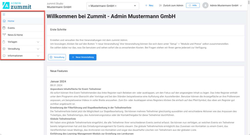 Willkommen im zummitStudio, Ihrer Kommandozentrale für all Ihre Veranstaltungen. Lassen Sie uns einen Blick darauf werfen, wie Sie die Benutzeroberfläche effektiv nutzen, damit Sie Ihr nächstes Event problemlos managen können.